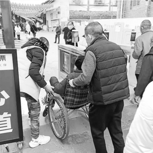 在四川成都洛带古镇,为响应适老倡议,提升线下服务能力,洛带古镇联合美团开展线下适老化服务,一方面,支持美团门票关怀版的使用,为更多老年人提供便利。另一方面,在景区5个主要入口设置了爱心入园通道,现场引导人员积极主动提供服务支持,帮助不会使用智能手机、行动不便的老人和残障人士实现快速入园。
