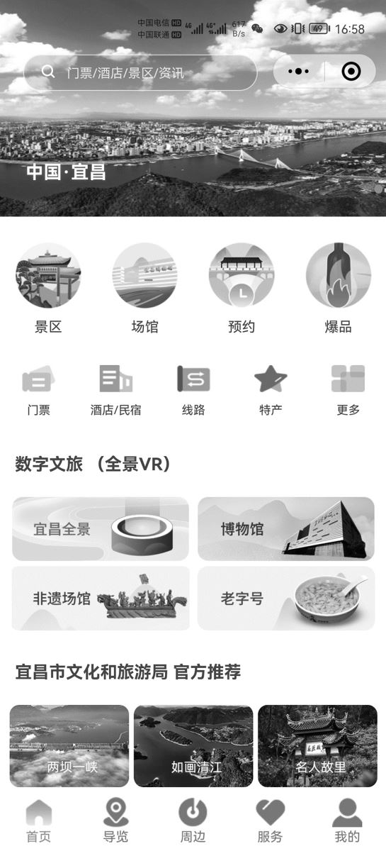 “猜您喜欢”“导游导览”“爆品”板块置于“爱上宜昌”小程序首页突出位置,游客点击这3个功能菜单均能体验到“精准推荐”服务。
