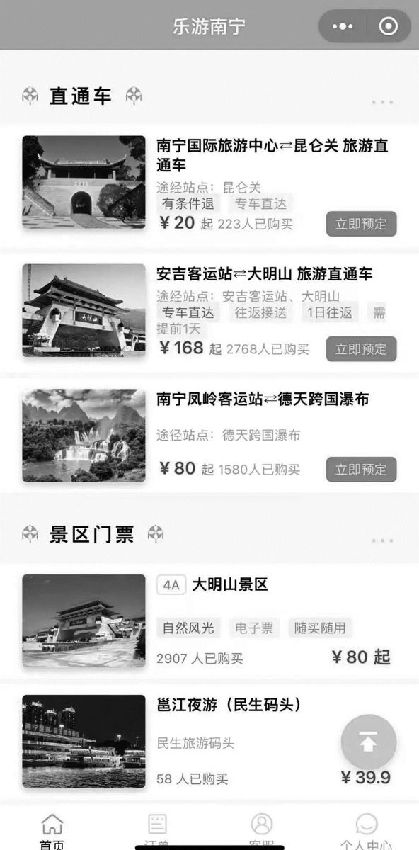 旅游直通车及门票预订服务页面截图 南宁市文化广电和旅游局供图