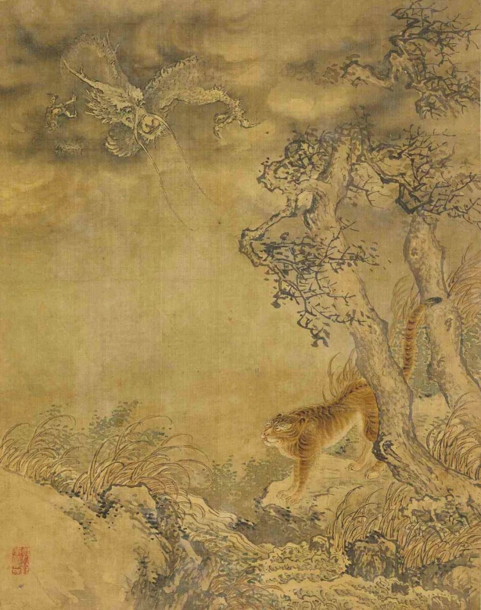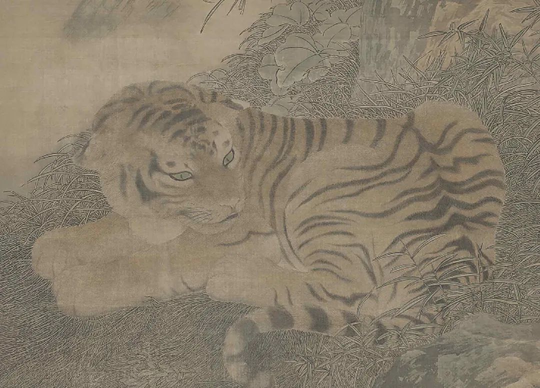 细捋一下中国艺术史中的老虎形象,大致可以认为,它的凶猛决定了其在艺术史上的两种形象:要么是被歌颂的主角,要么是反衬被歌颂者。前者它是虎啸山林的百兽之王,后者它被比它更强大的人驯服了。