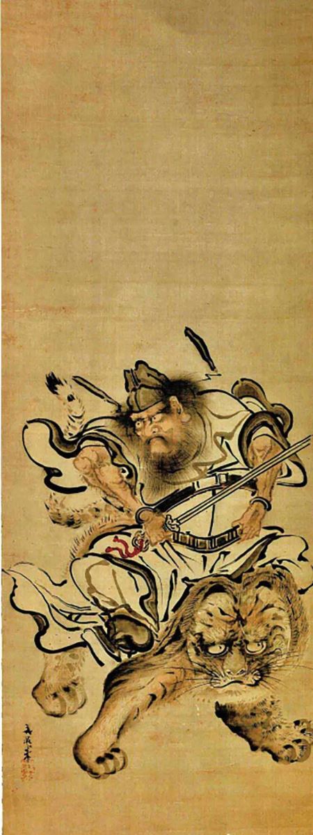 钟馗骑虎图(绢本设色) 92.3×33.8厘米 谷文晁 旅顺博物馆藏