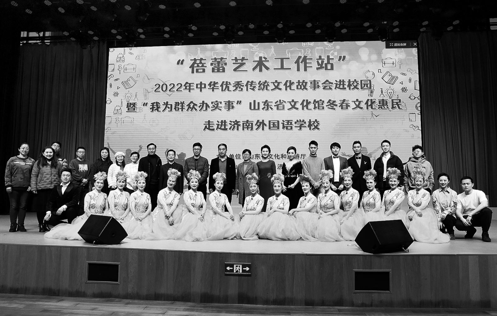 2月25日,中华优秀传统文化故事会进校园活动暨山东省文化馆“蓓蕾艺术工作站”文艺演出走进济南外国语学校。来自山东省文化馆的文艺志愿者和济南外国语学校的学生,共同带来了精彩的文艺节目。