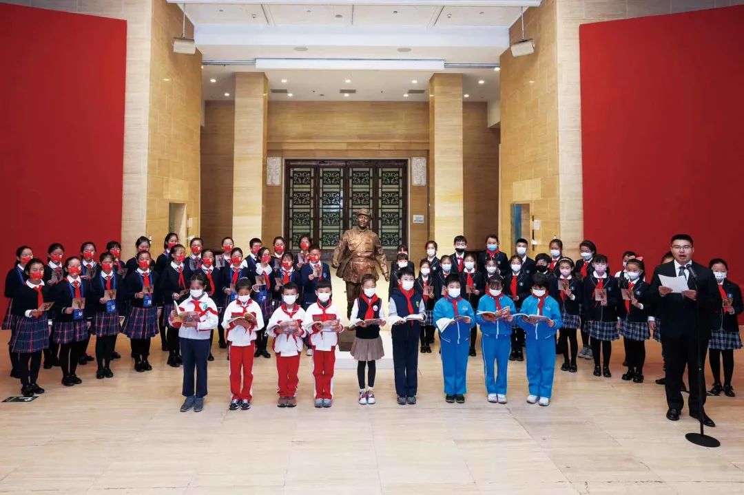 3月5日,在中国美术馆举办的公共教育活动上,在雷锋的雕塑前,来自北京市史家小学、灯市口小学等学校的少先队员在老师的带领下朗诵诗歌。