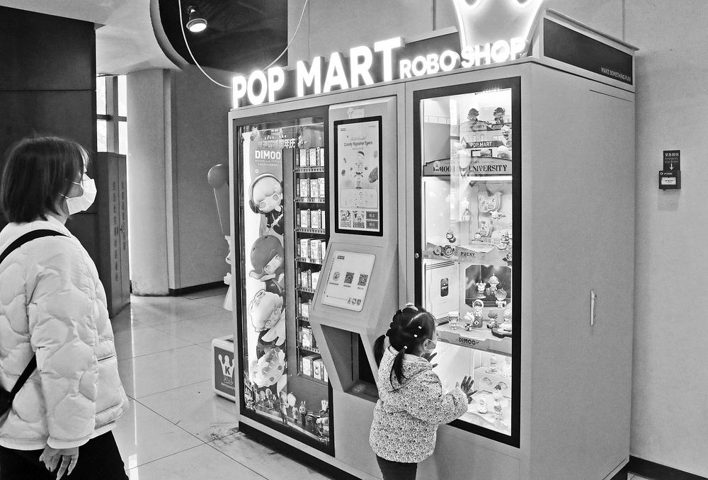 近几年,“潮玩”文创产品火爆,“泡泡玛特”“模言公社”“九木杂物社”等“潮玩”品牌为了赢得更大市场,与景区进行定制化合作,同时在景区内设立自动售卖机,受到年轻游客和小朋友们的热捧。图为近日,一位小朋友在北京奥体中心游览区内的“泡泡玛特”自动售卖机前选购商品。 本报记者 陈晨 摄