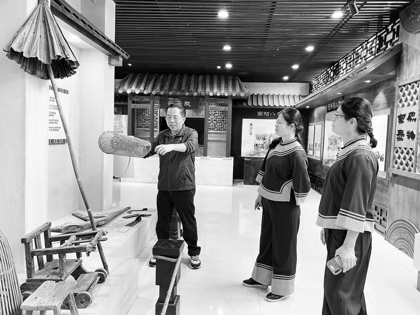 走进村史陈列室,古岳坡的记忆慢慢展现在眼前。这里的“古董”器物很多,有生产工具,也有生活用具,还有南阳八音、南阳大鼓等古乐器,这些物件是当地丰富多彩的壮民族习俗的重要载体。