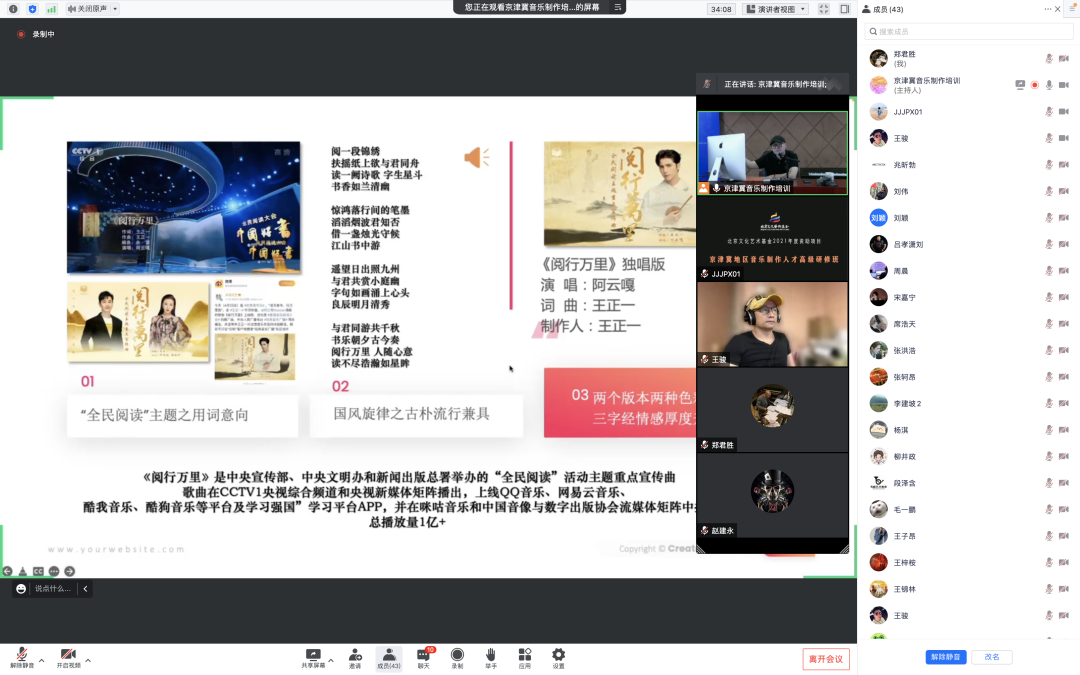 王正一老师长期耕耘在专业领域,是中国唱片集团有限公司的音乐制作部主任,近年来创作了大量优秀的音乐作品,积累了众多丰富的音乐制作实战经验,都是培训班授课宝贵的实践教材。7月12日下午,王正一老师为学员们带来了精彩的专题讲座《如何在创作中充分发挥现代音乐制作技术的优势》,干货满满,很多内容是学员们当前渴求了解的。
