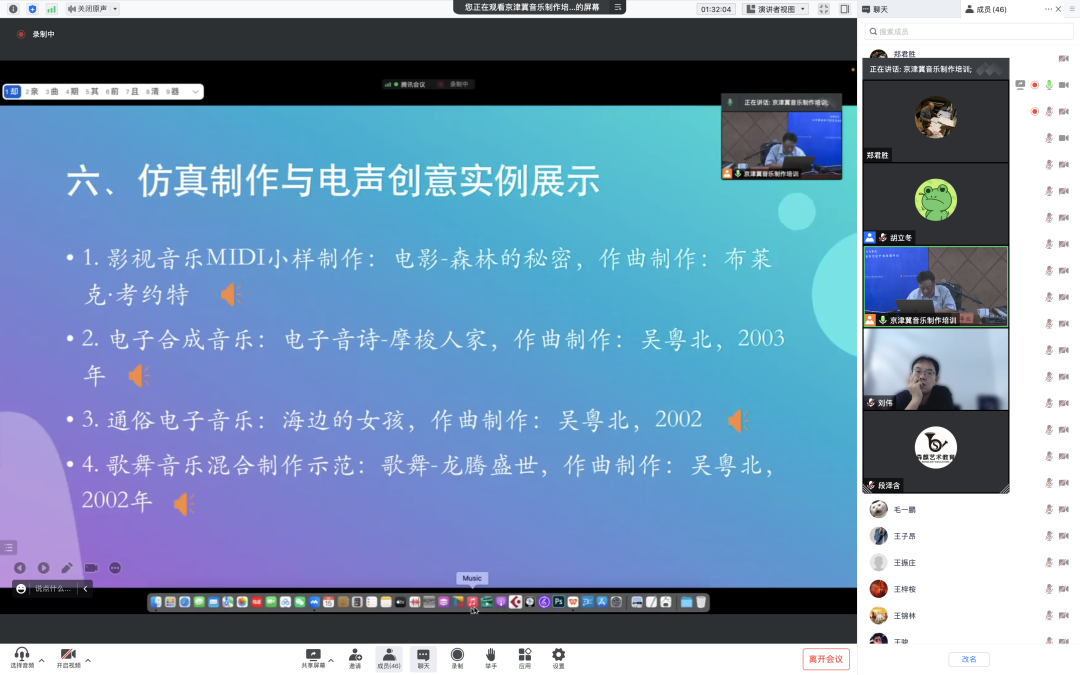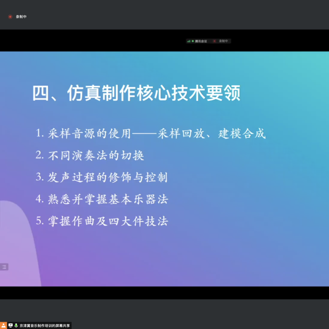 快乐而充盈的学习时光飞速而过,一天的课程不知不觉已结束,让学员们十分不舍。吴教授的课程为学员们带来了众多崭新的技术理念,激发了学员们潜在的创造力。我们相信,通过吴教授的本次授课,我们的学员们不断深化对新技术的学习,在未来能够将本次培训所学真正应用到创作上,为京津冀的音乐事业发展贡献自己的力量!