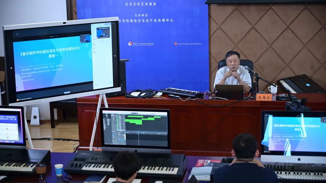 吴粤北教授现任中央音乐学院人工智能与音乐科技系、作曲系教授,作曲、电子作曲、电子音乐技术理论方向博士生导师,是国内著名的在电子与计算机音乐、录音艺术方面卓有成就的专家学者,也是作品硕果累累的作曲家。为了帮助学员们加强学习丰富的作曲理论与创作技巧,提升在高端领域的音乐科学技术素养,培训组专门邀请了吴粤北教授在7月15日做重要的学术专题讲座 ——《音乐制作中的虚拟现实与电声创意技术》。为了这次讲座,吴粤北教授花费大量的时间进行课程设计,并在课堂上展示最新的研究成果。专题讲座《音乐制作中的虚拟现实与电声创意技术》是一次音乐制作技术的盛宴,更是艺术与科学相融的一次盛会!