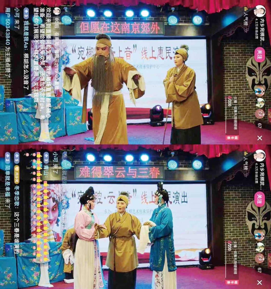2020年5月,武新建开始尝试抖音直播。因为没有游客,他索性将宛梆戏曲博物馆里平时接待来宾的展厅改成直播间,开始是每周六直播两小时,到6月变成每周两次。“头戴着美翠凤凤展翅,身穿八宝龙凤衣,我的父本是唐天子,俺乃是金枝玉叶驸马妻……”直播中,身穿粉色戏服的女旦款款走向舞台,水袖舞动,乐曲悠扬,唱词、身段、神韵都与在中央电视台表演《打金枝》时并无二致。
