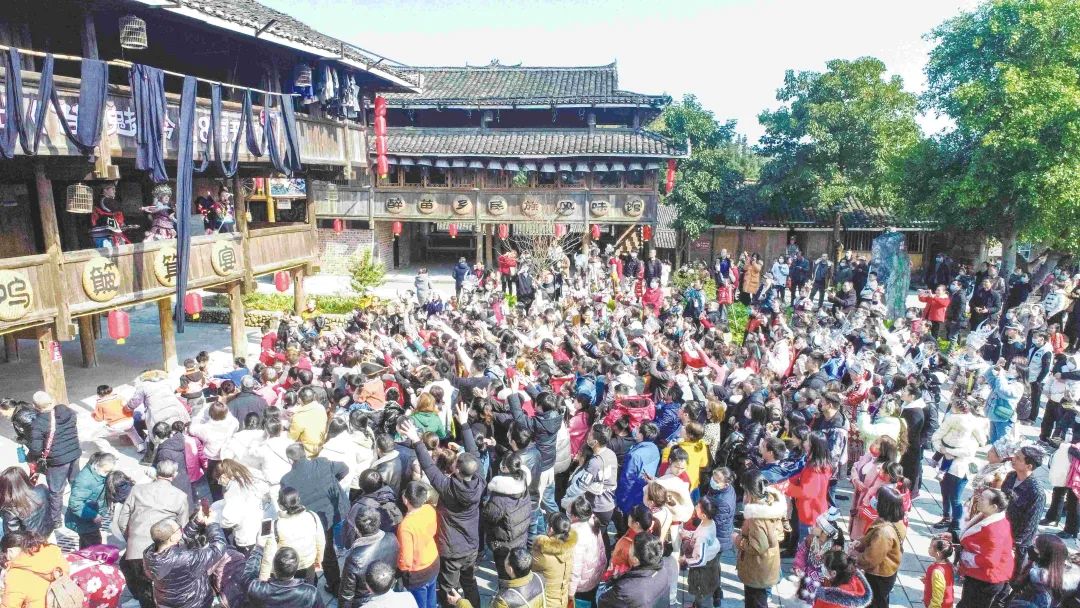 元旦假期,广西柳州市融水县梦呜苗寨民俗文化体验园迎来了客流高峰。