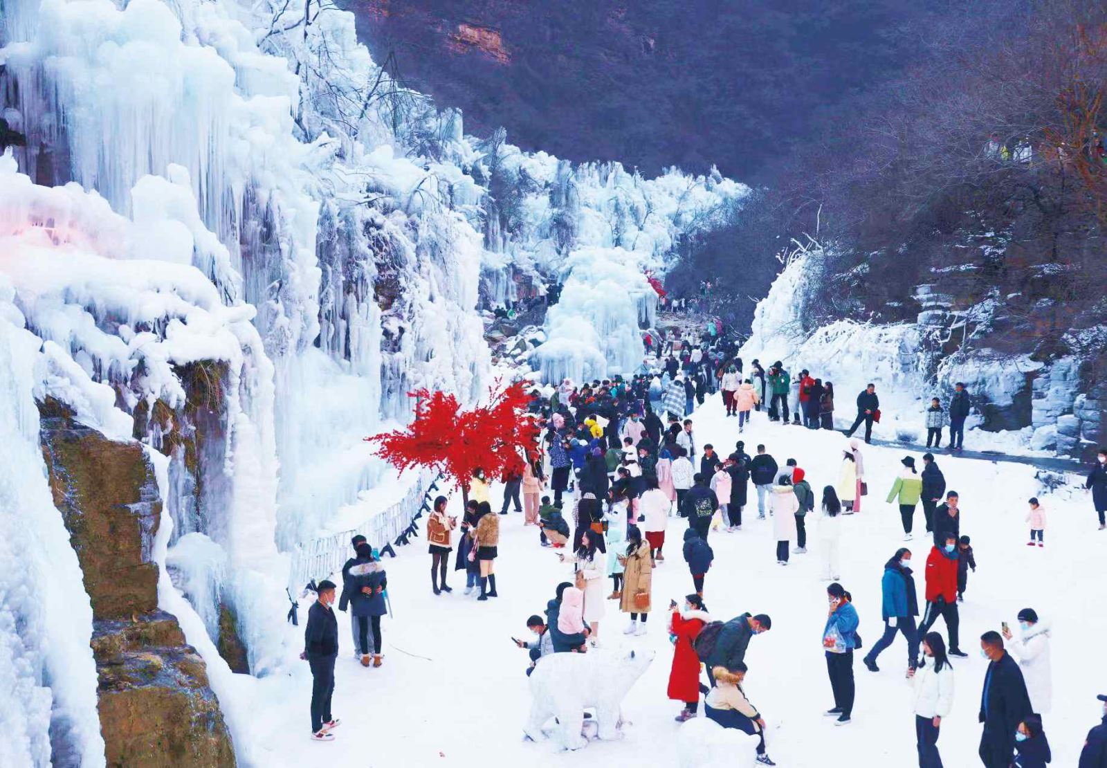 游客在河南云台山景区体验特色冰雪产品 本报驻河南记者 张莹莹 摄