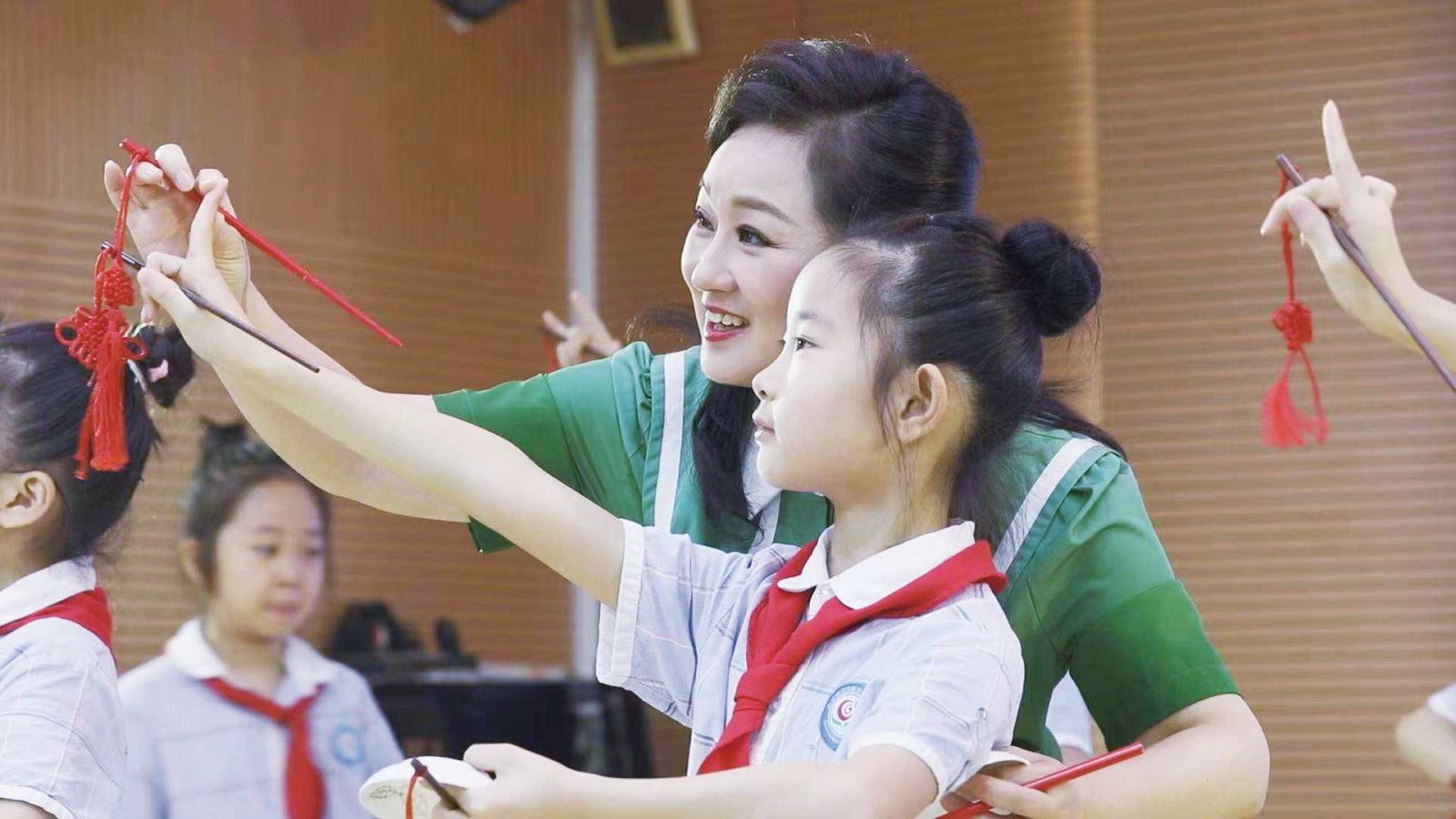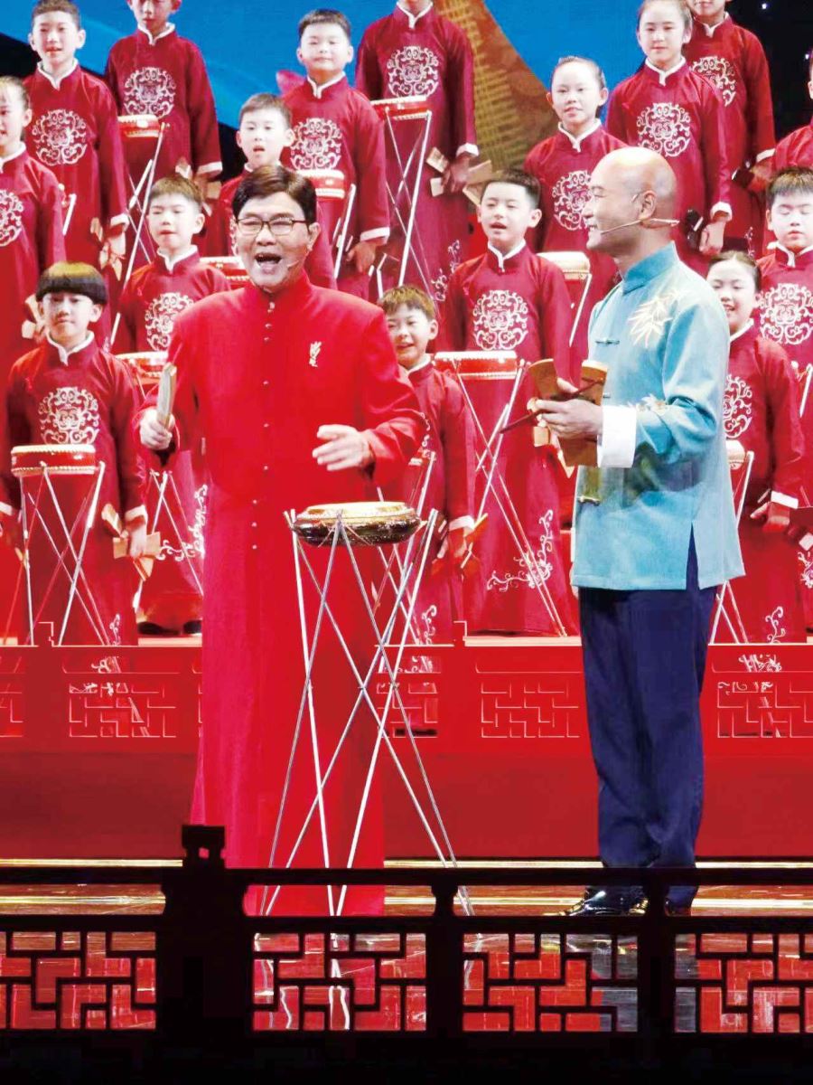 湖北大鼓国家级非遗代表性传承人张明智与徒弟徐宁以及60多名小学生同台演绎《说唱新时代》
