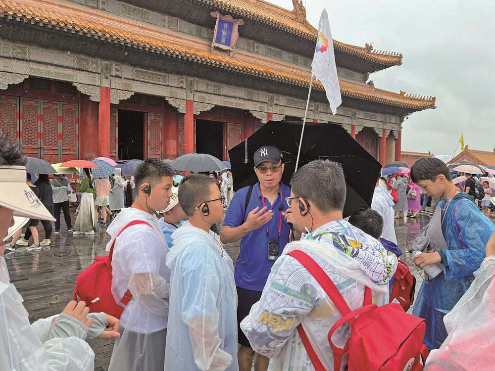 7月12日,中旅旅行导游刘丛带领研学团队在故宫寻觅古人智慧。 本报记者 张宇 摄