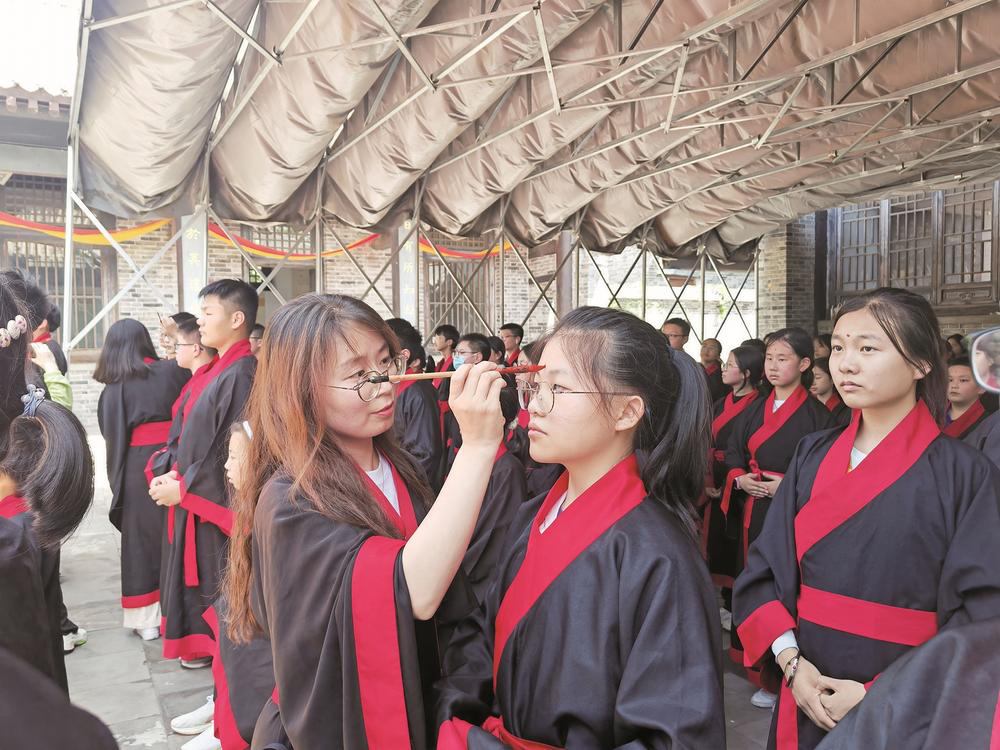 参加研学团的学生们体验入泮礼。 世纪明德西安公司 供图