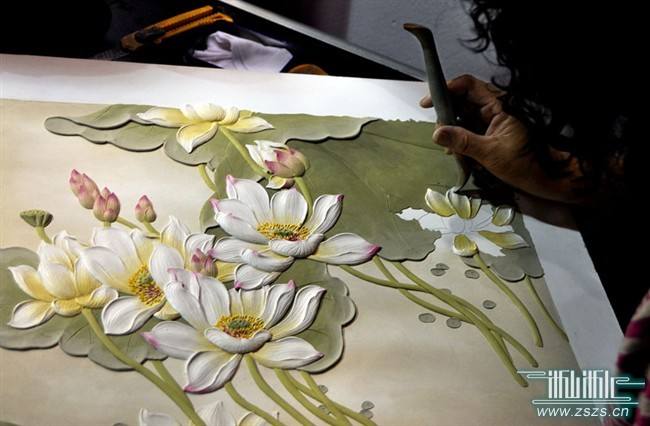 但在市场上,瓯塑壁画的价格都是按照平方米计算,虽然每平方米的价格通常可达到上万元,但去除人工、时间等创作成本后,利润并不高,因此,瓯塑壁画的价格应按作品而不是尺寸计算。