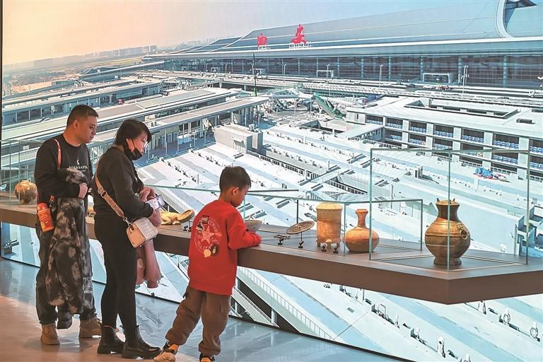 陕西西安,旅客在西部机场博物馆参观。光明图片/视觉中国
