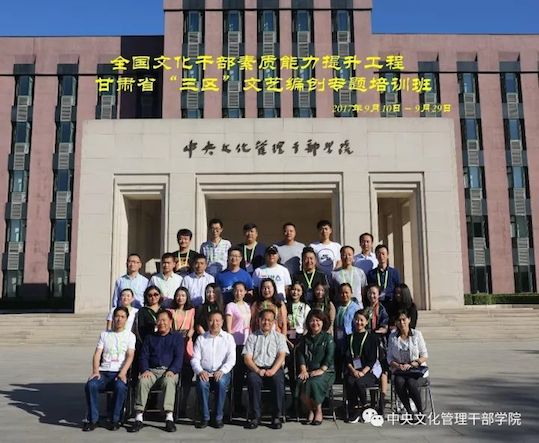 9月10日至9月29日,全国文化干部素质能力提升工程---甘肃省“三区”文艺编创专题培训班在我院举办。来自甘肃省四个地区文广新局和文化馆的30名同志参加了学习。