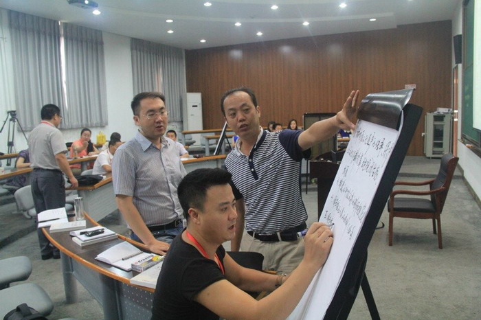 8月4日下午,文干院第五教室走进一位文雅端庄、神采飞扬,脸上荡着春天般笑容的女老师,她就是中国传媒大学经济管理学院公共管理系副主任、时尚管理研究中心主任薛华老师。她就如何创新发展江西赣剧为题,结合创意十步曲教学法,以学员出谋划策为内容,为江西文化经营管理人才高级研修班学员们带来了一堂妙趣横生、学以致用的文化创新发展研讨课,同学们各抒已见,课堂气氛异常活跃。