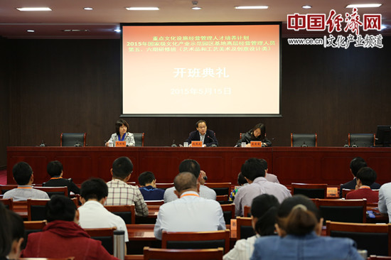 中国经济网北京5月18日讯 5月15日,“重点文化设施经营管理人才培养计划——2015年国家级文化产业示范园区基地(艺术品和工艺美术及创意设计类)高层经营管理人员研修班”在北京中央文化管理干部学院开班。