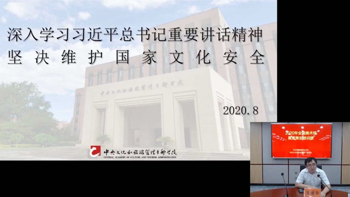 开班式上,我院党委书记、副院长王建华做了开班讲话。希望学员深入学习贯彻习近平新时代中国特色社会主义思想和党的十九大精神,全面提高政治意识、政策水平、管理能力、专业能力。王书记还以《深入学习习近平总书记重要讲话精神 坚决维护国家文化安全》为学员做了一堂精彩讲座。学员就“如何在工作中落实好文化安全问题”和王书记在线上进行了深度交流,课堂气氛热烈。