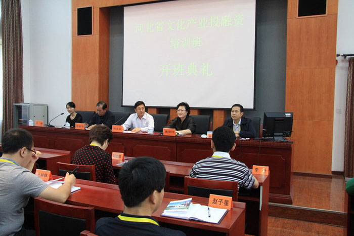 9月25日上午,河北省文化产业投融资培训班举行开班典礼,典礼由中央文化管理干部学院党委书记周庆富致欢迎辞,文化部文化产业司副巡视员施俊玲讲话,河北省文化厅副厅长李建华作开班动员,河北省文化厅文化产业处副处长韩朝旗主持。周庆富代表学院欢迎远道而来的河北省学员,希望学员在在校期间认真学习,生活愉快。施俊玲在讲话中指出,此次培训班的学习,有助于提升河北省文化产业领域干部的能力,了解国家相关政策,学员们一定会学有所得,获益匪浅。李建华在动员讲话中指出,学员们要珍惜这次难得的学习机会,遵守学院相关管理制度,学有所获,不虚此行。