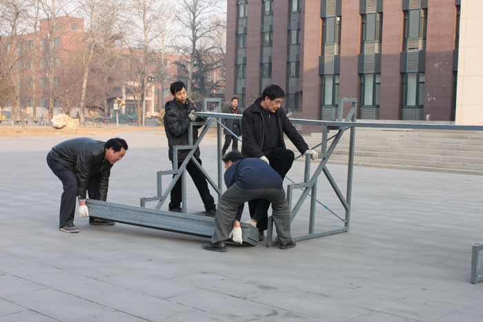 随着我院培训事业的蓬勃发展,近两年来我院承接的培训项目越来越多,集体合影架租用次数大幅度增加,且每次租用费用很高。为积极落实院领导“勤俭办事业”的要求,总务处维修科充分发挥专业特长,集思广益,自己设计图纸、自己采购材料、自行施工,克服了人员年龄偏大、知识结构偏低、劳动强度大等种种困难:遇到设计难题就请教单位内外的专业人士,缺少专业设备他们就想方设法向施工单位临时借用,他们在不影响正常工作任务的前提下,用20多天时间就制作完成了一套能供120人集体合影架子一套,仅花费了6000元材料费,从2012年3月投入使用以来,他们主动承担了合影架的安装和拆卸任务80多次,仅去年1年就为学院节约资金8万余元。