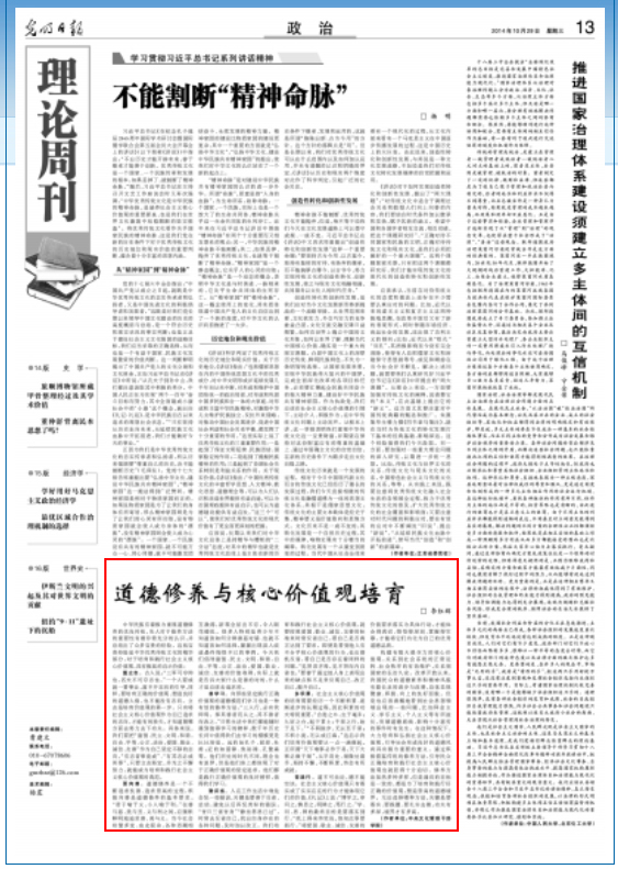 本文发表于《光明日报》2014年10月29日理论版,有删节。刊发题目:道德修养与核心价值观培育