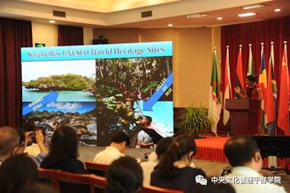 9月10日上午,在主题发言活动中,我国文化部非物质文化遗产司综合处调研员李晓松、阿尔及利亚梅地亚州文化局局长REGHAL·AOMAR(欧马赫·拉阿勒)先生、埃及图书出版总局翻译研究中心主任HATEM·MANSOURSHAFIK(曼苏尔·沙菲克·哈特木)先生和塞舌尔国家文化遗产研究与保护的部门高级工程师JOSHINTALEONNE(乔诗迪·莱昂内)女士等13个国家的代表各自围绕本国的非遗保护制度体系建设、非遗保护与传承工作推进、非遗保护国际交流合作等作主题发言。