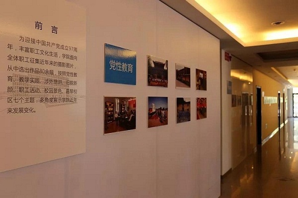 6月27日,我院“喜迎建党97周年,展现学院新风貌新成果”摄影图片展开展。展览分为党性教育、教学实践、涉外培训、旧貌新颜、职工活动、校园景色、昌黎校区七个主题,共展出摄影作品80余幅。展览旨在多角度展示学院近年来的发展变化,丰富职工文化生活。该展览是学院“七一”系列活动之一。