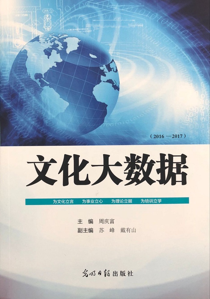 2016年,国内第一本以“文化大数据”命名的文化数据分析图书出版,在社会各界特别是文化和旅游系统引起强烈反响,且被国务院有关部委列入了省部级、厅级培训班的培训教材,据权威数据显示该书被国内120多家图书馆收藏。时隔两年,第二本以“文化大数据”命名的《文化大数据.2016-2017》于2018年11月1号由光明日报社正式出版,在全国新华书店和网上书店发行。