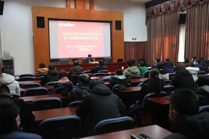 李述舜同志以自己当年参加抗美援朝战争后勤补给保障和参与战后朝鲜经济恢复建设六年的亲身经历为报告主线,生动讲述了在美国飞机封锁我志愿军运输线、极力阻挠我后勤补给的艰难情况下,他所在的后勤运输部队所做出的的艰苦卓绝的斗争及其大无畏的牺牲精神,深情回忆了战争结束后他所在的部队继续留在朝鲜,执行维护停战协定实施任务、积极参与朝鲜经济恢复建设、帮助朝鲜人民重建家园的感人故事以及中朝人民一家亲的国际友谊。报告会把大家带回那个战火纷飞的岁月,让大家感同身受伟大抗美援朝精神,同时也对李述舜同志始终饱含着对祖国的热爱、对信仰的坚持无比敬佩,他无愧为我们身边“最可爱的人”,是我们学习的榜样。