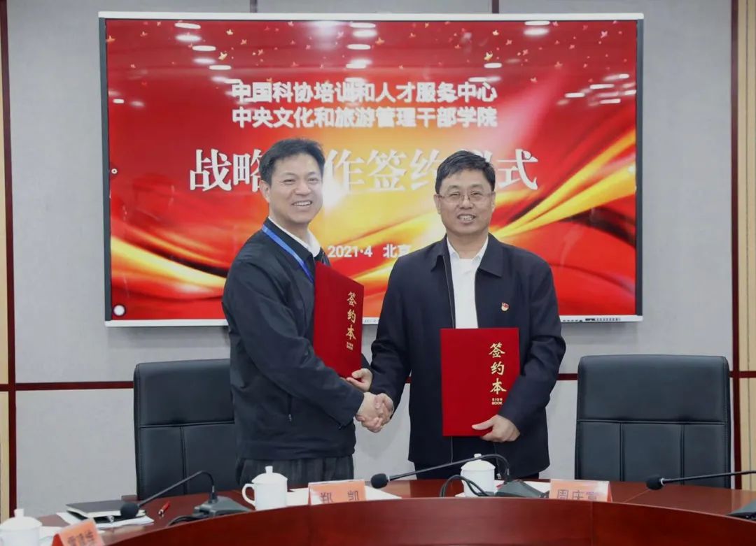 4月12日,我院与中国科协培训和人才服务中心签订战略合作协议,学院院长周庆富、中国科协培训和人才服务中心主任郑凯等出席签约仪式。