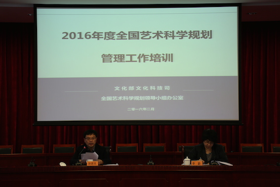 2月26日至28日,文化部文化科技司暨全国艺术科学规划领导小组办公室在我院举行2016年度全国艺术科学规划管理工作培训。文化科技司孙若风司长出席开班仪式并作了《“十三五”时期人文与科技的双重责任》的专题讲座。培训期间, 文化科技司相关工作负责人结合全国艺术科学规划各类项目申报、年检、鉴定结项等具体工作进行全面总结,对中级管理单位进一步做好规划管理工作提出明确要求,同时结合“全国艺术科学规划项目申报管理系统”,对进一步做好网上申报和相关管理工作进行说明。各省、自治区、直辖市文化厅(局)艺术科研管理工作职能处室和省级艺术规划办负责人,以及文化部相关直属单位干部近60人参加培训。