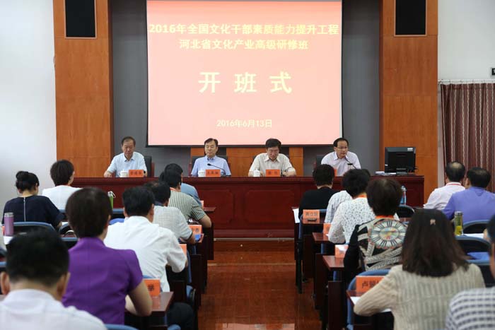 2016年6月12日至18日,河北省文化产业发展高级研修班在我院成功举办。来自河北省11个地市、50个区、县(市)分管文化的领导干部参加了学习。河北省文化厅党委书记王离湘、副厅长李建华、中央文化管理干部学院院长张旭、副院长段周武出席开班式并做重要讲话。