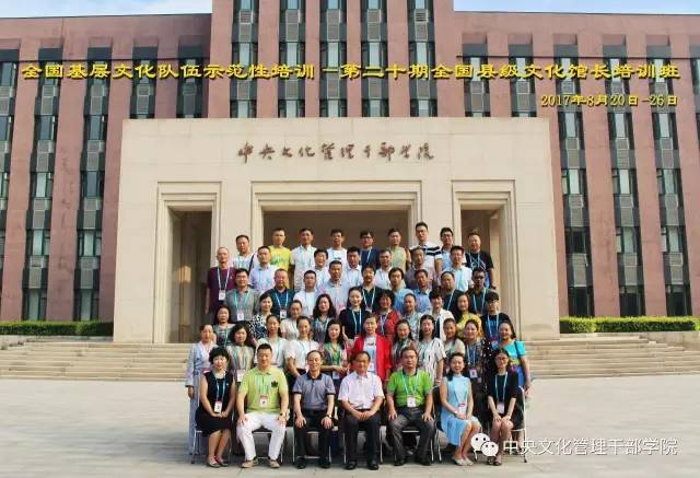 8月20日至26日,全国基层文化队伍示范性培训——第二十期全国县级文化馆长培训班在我院举办。来自全国29个省市的51名县级文化馆长参加了学习。中央文化管理干部学院党委书记、副院长段周武同志出席了开班仪式并作了开班动员。