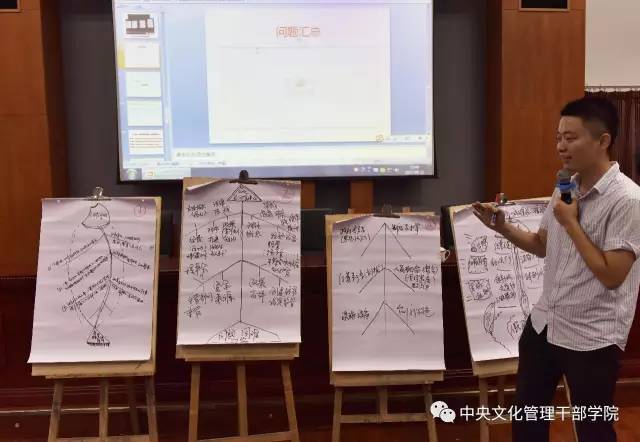 结构化研讨的环节中,学员们在老师的带领下,利用科学的方法分析文化馆现状,通过群策群力找到痛点和突破口,提出解决办法,再讨论可行性。学员们对这样的讨论形式非常认可,不仅学习了科学的研讨方法,更能够理清思路,深度剖析问题,有利于运用到以后的工作分析中。