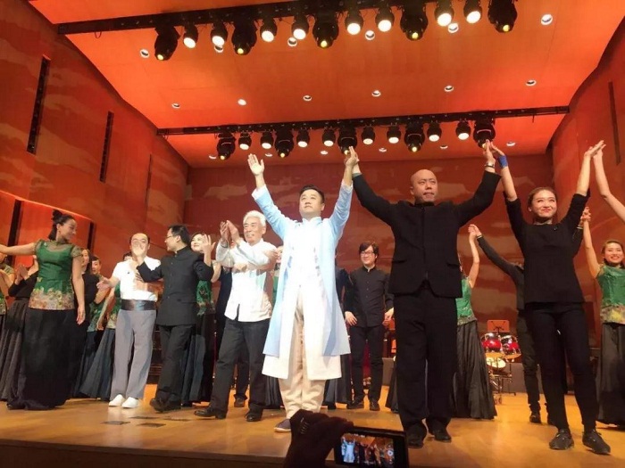 在席强团长的精心筹备与周密安排下,中央民族乐团的演员们为院团长们演奏了《玄奘西行》、《又见国乐》、《丝绸之路》的精彩片段,主创人员还就艺术创作的台前幕后与院团长们进行了广泛深入地交流,丰富的安排和热情的招待让各位院团长很是感动。
