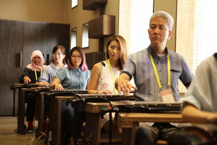 2003年11月,中国古琴艺术被联合国教科文组织列入第二批“人类口述和非物质遗产代表作”。中国古琴有着悠久的历史,是世界最古老的弹拨乐器之一,主要由弦与木质共鸣器发音,至今已有3000多年历史。亦称瑶琴、玉琴、七弦琴或琴。研讨班赴钧天坊古琴文化艺术传播有限公司听取了古琴文化介绍、观看了古琴雅集、参观了古琴博物馆、体验了古琴课程和古琴生活美学空间。