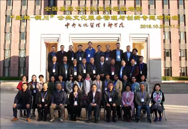 深秋的北京,蓝天白云,秋高气爽。10月28日至11月2日,2018年全国基层文化队伍示范性培训“盐城—铜川”公共文化服务管理与创新专题研修班在中央文化和旅游管理干部学院举办,两地的市、县文广新局分管领导与基层文化干部共41人参加了学习培训。