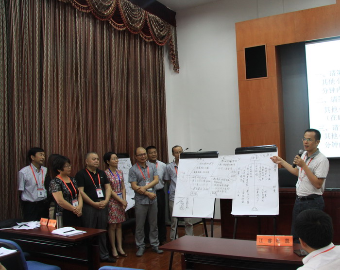 公元2014年7月28日是个难忘的日子,在文干院最具现代化教学功能气息的阶梯教室,为期十天的全国公共文化服务社会化发展专题研修班结业典礼正在举行,来自全国各省、地市县公共文化机构的管理干部和文化馆、图书馆的馆长计46位同志齐刷刷列队站立,仿佛出征的将士,庄重,精神饱满,像一尊尊雕像。随着班主任宣布结业典礼开始,班长天津市少儿图书馆副馆长林洁款款走向讲台,代表全班宣读了《我们的心声》学员寄语,郑重地将珍藏班歌歌词、全班合影照片和饱含全体学员浓浓深情的签名纪念册,双手交给班主任,又由班主任刘瑞彪呈交到我院副院长段周武手上,尔后,随着学员“指挥家”广东佛山市文化馆长袁新荣的手势,一首全班同学倾情大合唱《我们的梦》响彻教室,演绎了像模像样的准合唱团节目水平,男声部和女声部交相呼应、轮唱合唱,声情并茂,声声激昂,声声揪心……学员们感慨,十天胜似十年。五个组的代表发言激情澎湃,感恩文化部,感恩学院,感恩老师,感恩同学,感恩这次非同一般的培训,大家难舍难分。