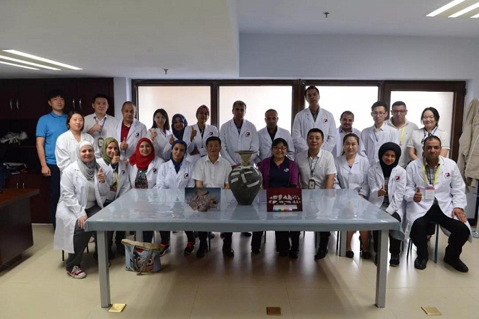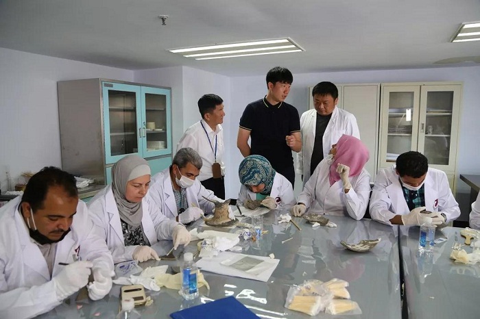 培训期间,学员们还远赴锡林郭勒盟博物馆实习,在中国专家的指导下,大家团结一致,共同完成一件高约80厘米的北魏彩绘陶罐的修复。陶器发明是人类最早利用化学变化改变自然属性的开端,是人类社会由旧石器时代发展到新石器时代的标志。阿拉伯陶器发展受中国唐代、宋代制陶的深远影响,制作工艺及修复方法相通。看着这件凝聚了中阿专家心血的修复作品,大家兴奋不己,内心充满对先辈们的敬意和对文物修复的敬畏之情。