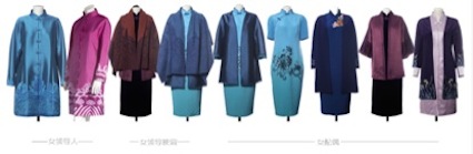 “这套特色中式服装,充分体现中国的传统和文明,让人一看就知道是中国的。”负责此次服装设计和制作工作的中国服装设计师协会副主席、北京服装学院院长刘元风解释,从款式上,立领对襟、开襟、连肩袖等,都融合了中国历代经典款式。从面料上,采用传统真丝面料,如宋锦、漳缎,都属非物质文化遗产。从纹样上,海水江崖纹、万字纹均展示传统纹样的精华。从工艺上,采用了盘扣等中国特色传统工艺。色彩上,选用了故宫红、靛蓝、孔雀蓝、深紫红、金棕、黑棕等厚重大方的传统色调。